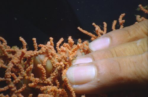 Ein orangenes Pygmäenseepferdchen